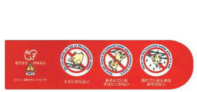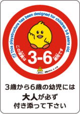 | 納入させて頂く遊具には「年齢表示シール」及び「注意シール」を添付し利用者への注意喚起を高めます。 |