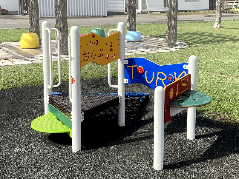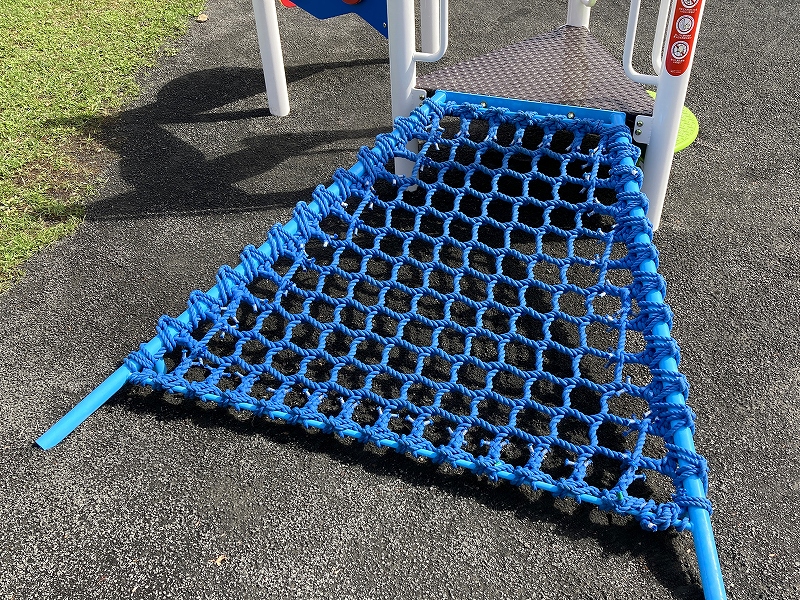 ・ゆったりとしたステップ、緩やかで少し揺れるネットのぼり(ワイドネット)、地上でのパネル遊び、色や動き、点字などの